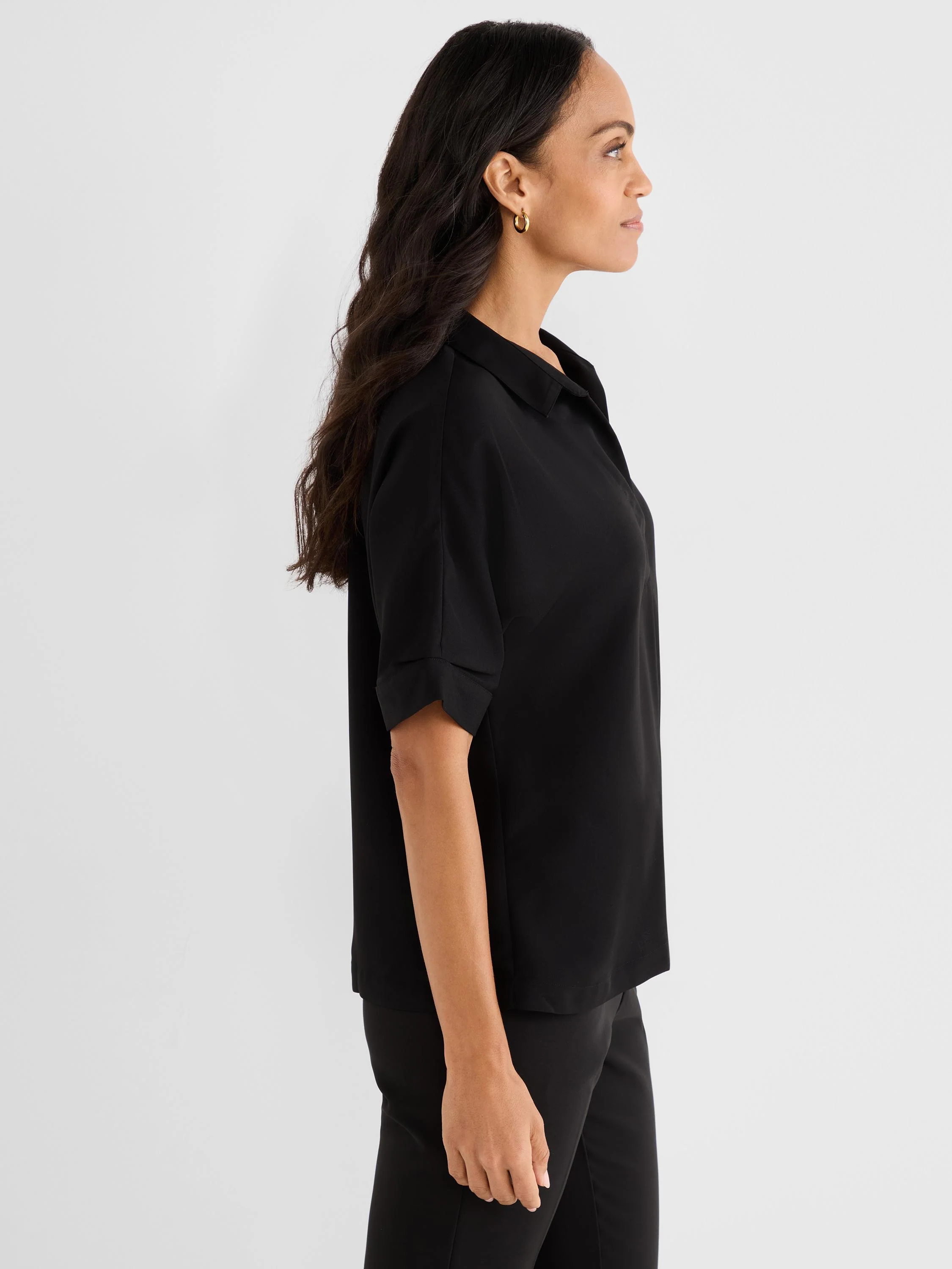 Our fan-favorite Devon dress is now a shirt. As easy and elevated as its older sister, the Devon Shirt features a drapey silhouette and a split neck. A collar lends a touch of sophistication to an otherwise relaxed feel. We're styling it with a printed pant or fringed jacket for an added hit of personality.