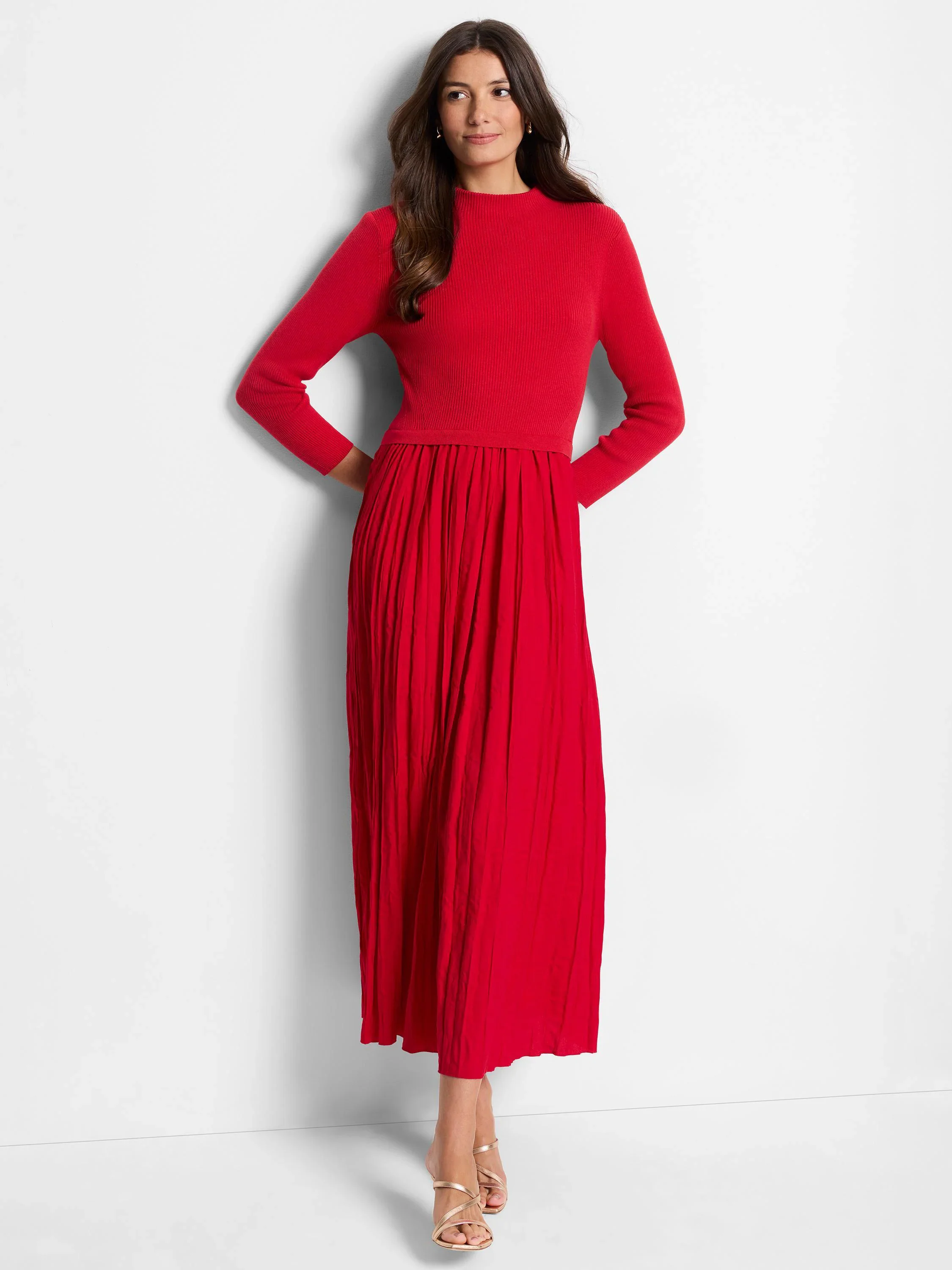 What do you get when you combine our knitwear artistry and cut-and-sew construction? The must-have mixed-media Kira dress. The knit top is a bouncy lightweight cotton viscose blend in our all year rib texture that's cozy and comfy as your favorite sweater. The waist has a little extra give and the woven bottom has a crinkled texture to match the knit texture up top.