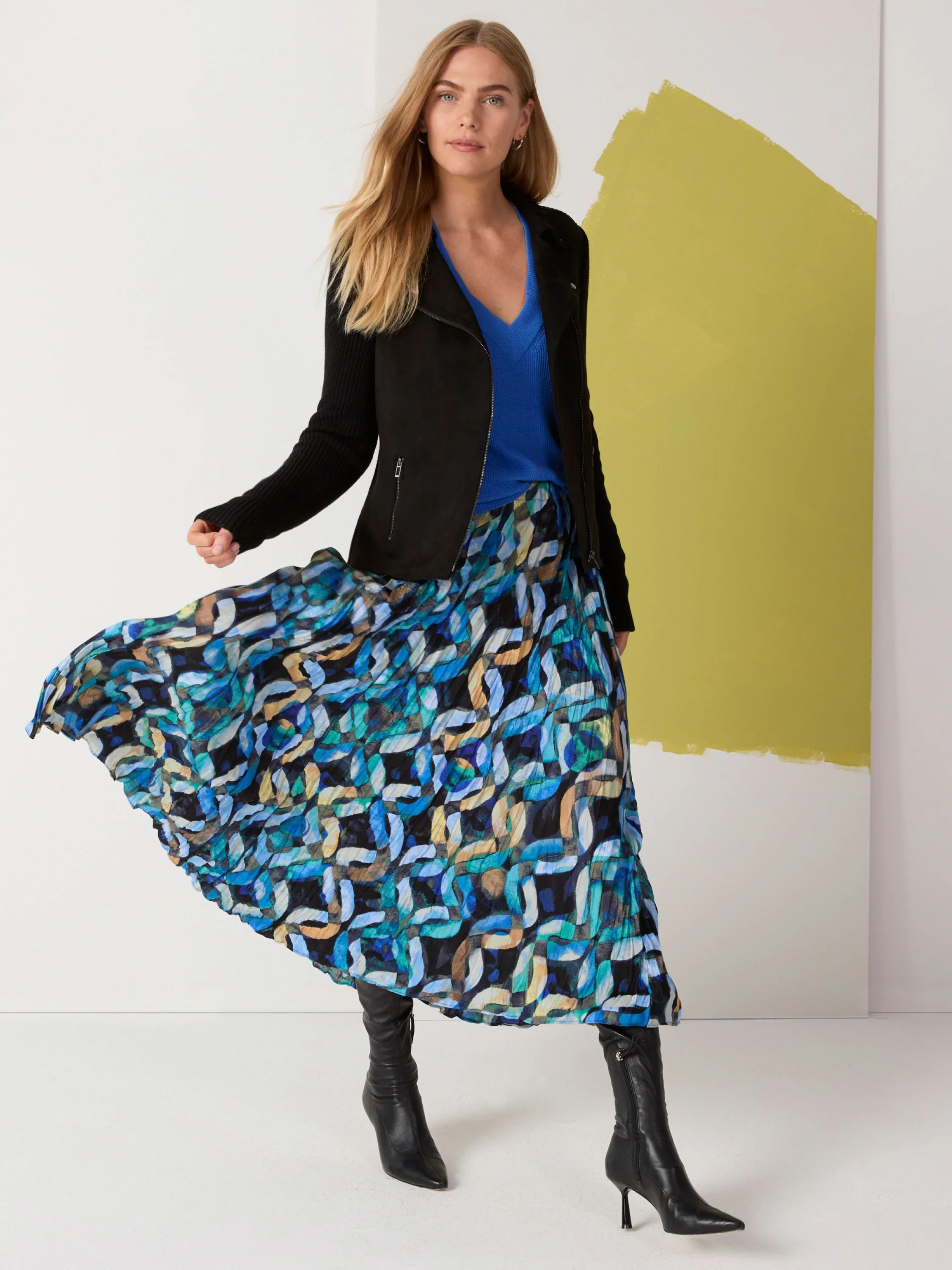 Mix up your jacket game with the Mixed Media Moto. Featuring All Year yarn in a shaker stitch on the back and sleeves and with a vegan suede front, this fashion jacket was designed to look great over jeans, trousers, and work pants. The silhouette is sleek and sophisticated and speaks to the moto jacket trend. Unlined with zip closure and pockets and a hem designed to sit at the hip.