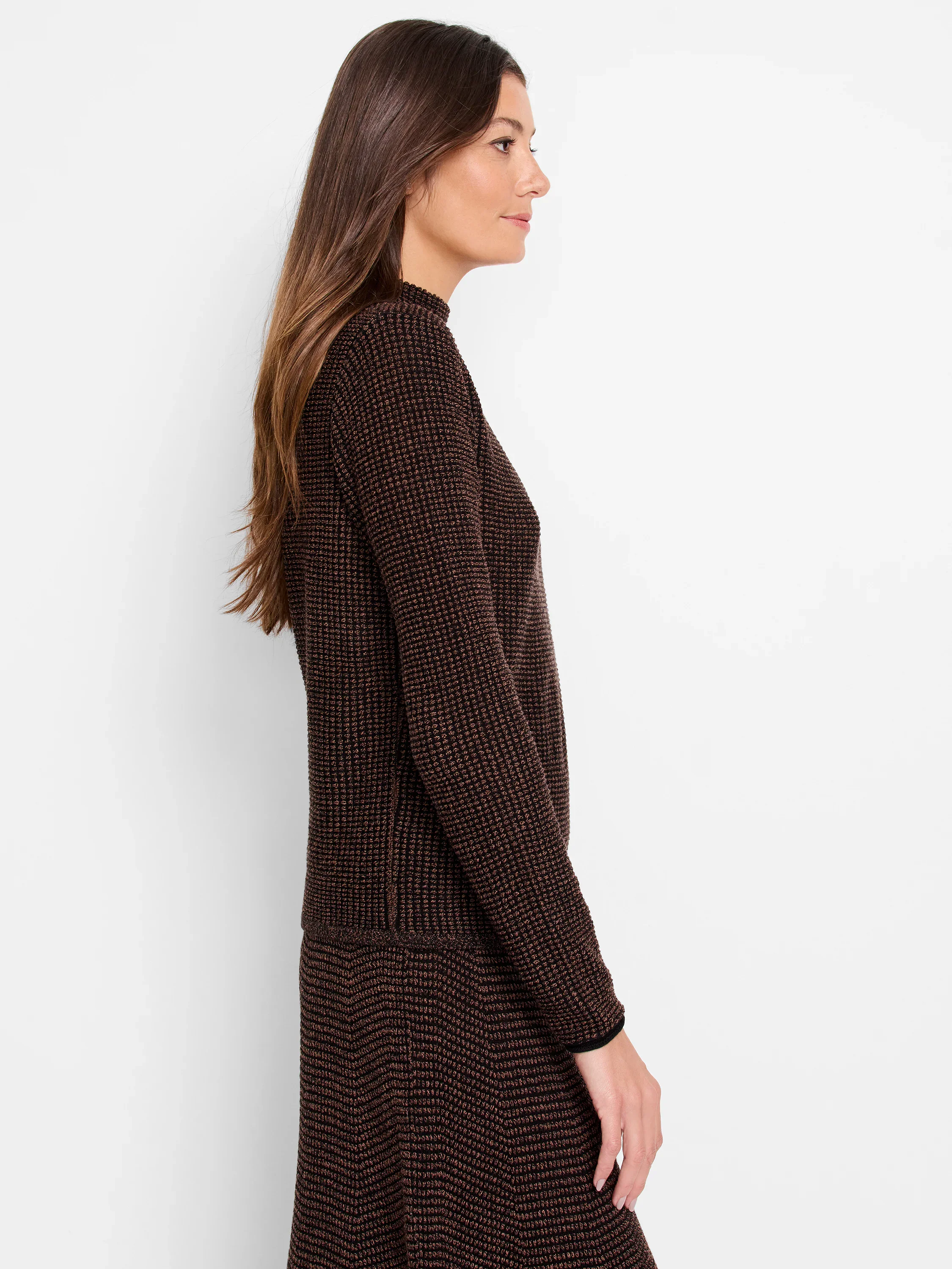 Our knitwear experts' new favorite sweater. The detail that goes into every stitch is what makes the Pixel Knit an instant classic: combining texture, detail, and a uniquely comfortable feel for a sophisticated look you can dress up or down. Wear it with denim or a smart matching skirt for an easy dressed up ensemble. Mindfully Made from fully fashioned knitwear and from partially recycled materials.