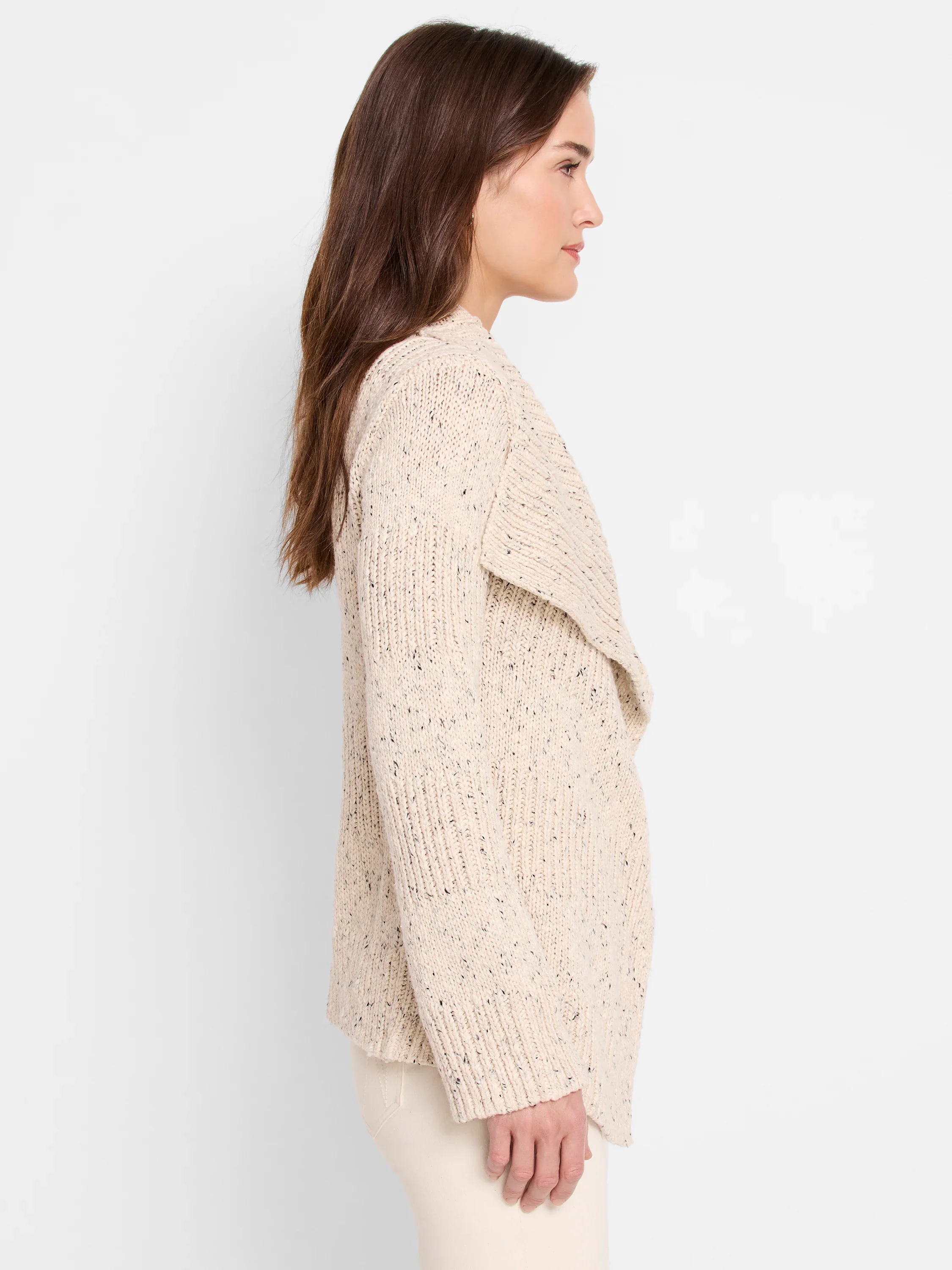 Feel the difference. The Texture Tweed Cardigan blows up the classic cardigan silhouette with oversized lapels, extra length, and a rich textured stitch to create a perfectly cozy, effortlessly elevated piece you'll reach for again and again. With a shawl collar, easy fit, more robust construction, ribbed stripes, and a dropped shoulder silhouette: all aimed on creating the most comfortable, still stylish, cardi possible. Mindfully Made from no waste knitwear that eliminates textile waste. Mindfully Made: Fully fashioned knitwear (or no waste knitwear) is knit to shape, then each panel is linked together; meaning less textile waste.